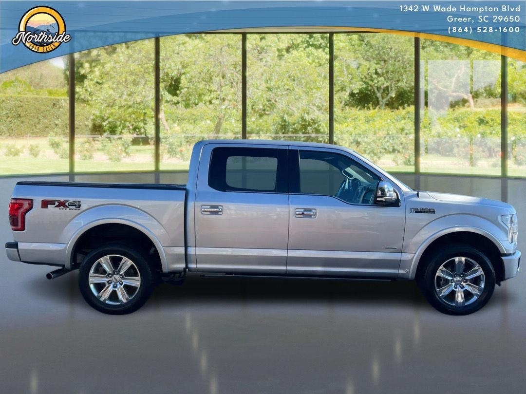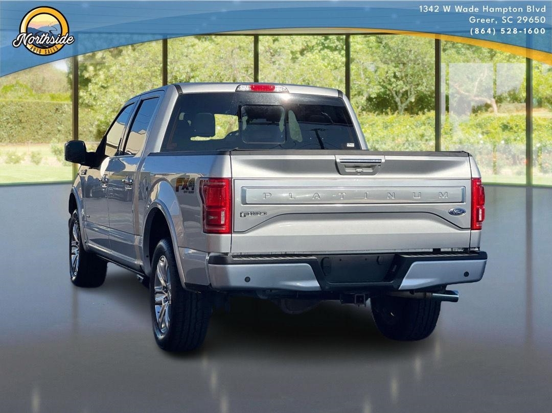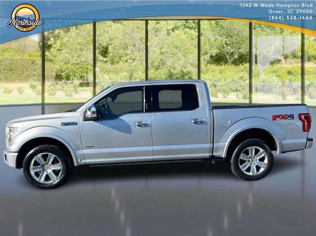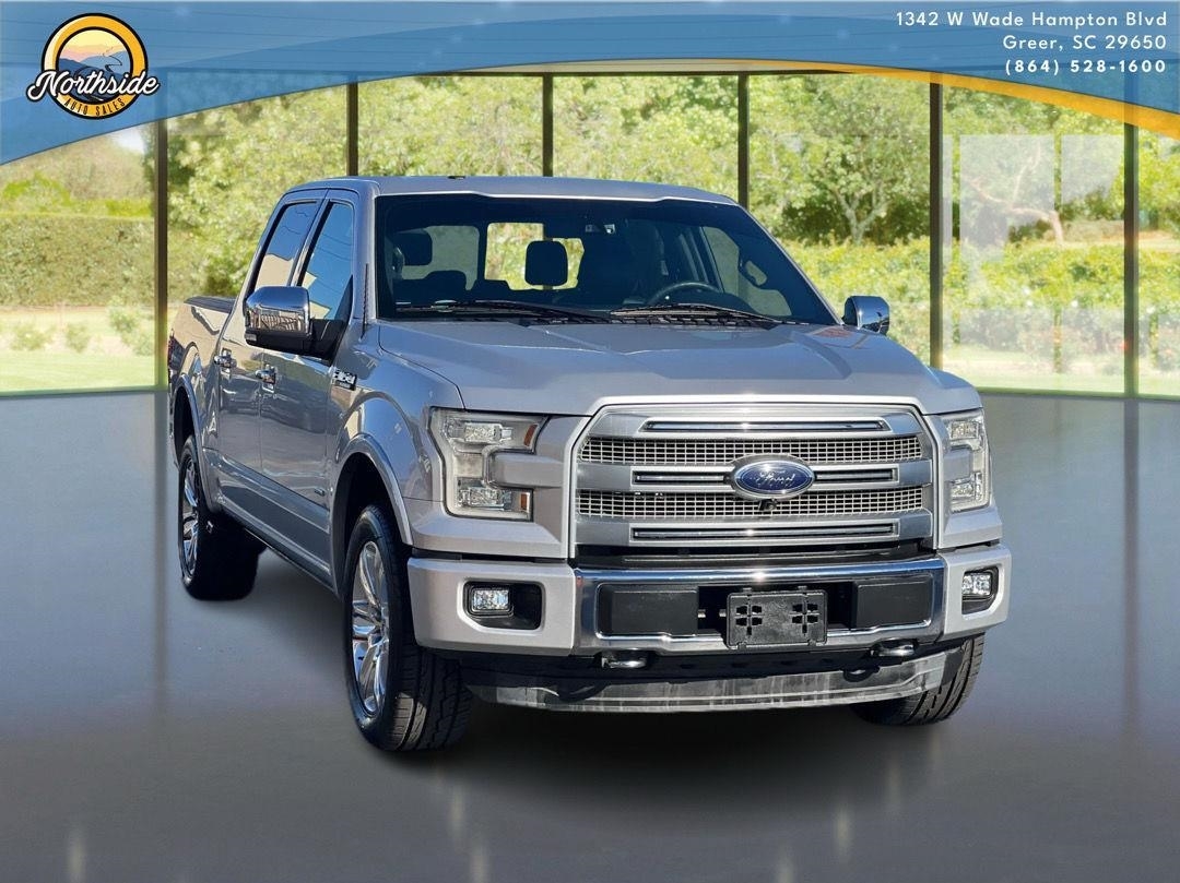 This 2015 Ford F-150 Platinum, has a Ingot Silver Metallic exterior and an Black interior color. 103,305 miles. Stock Number 3154. You can connect