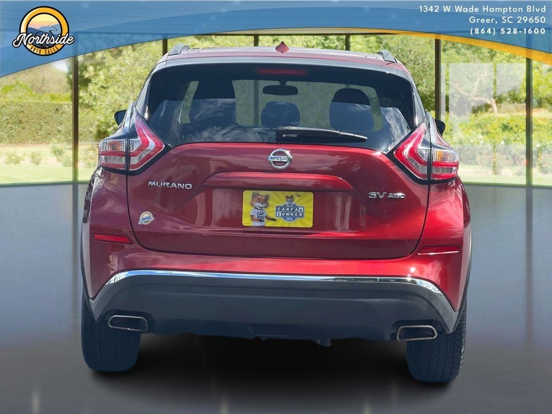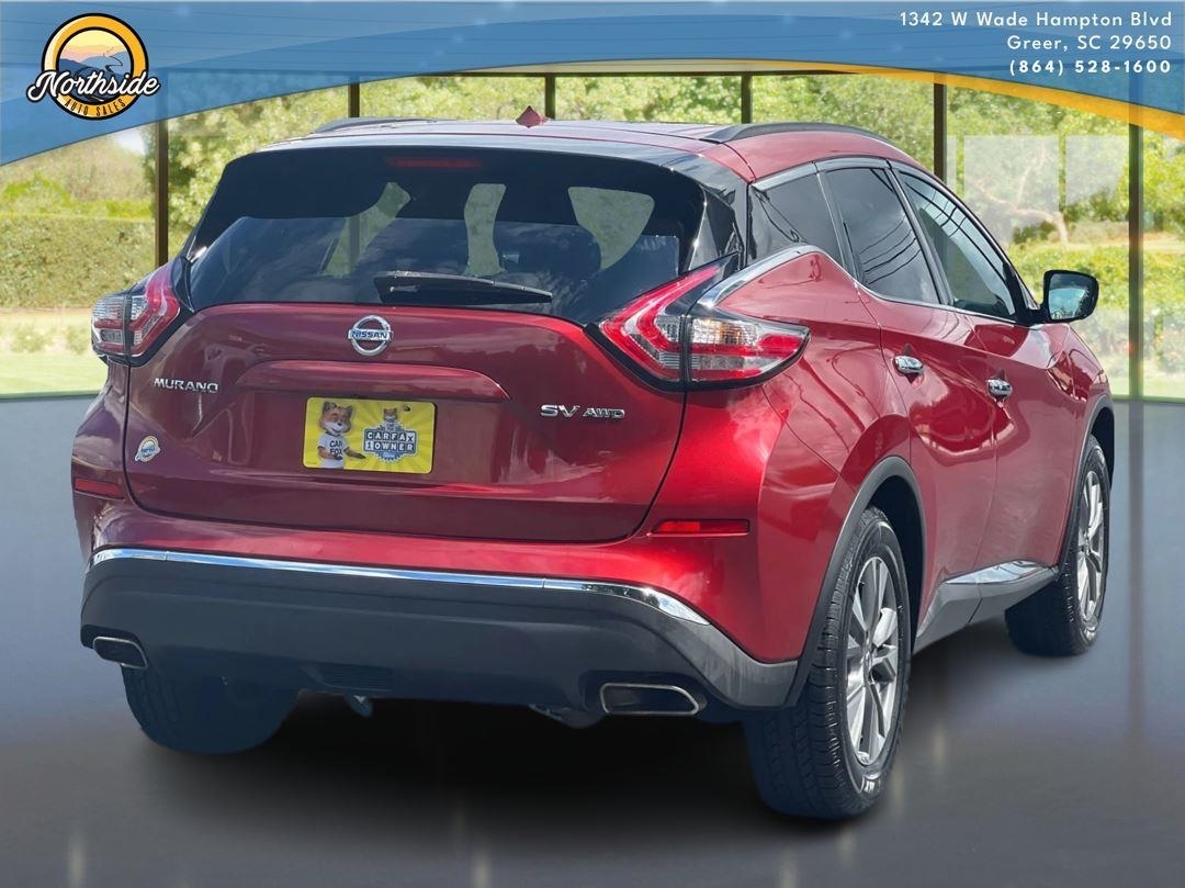This 2016 Nissan Murano SV, has a Cayenne Red Metallic exterior and an Black interior color. 101,559 miles. Stock Number 3050. Visit us today at 1342 West Wade Hampton Greer SC 29650 or call us at (864) 244-8880.