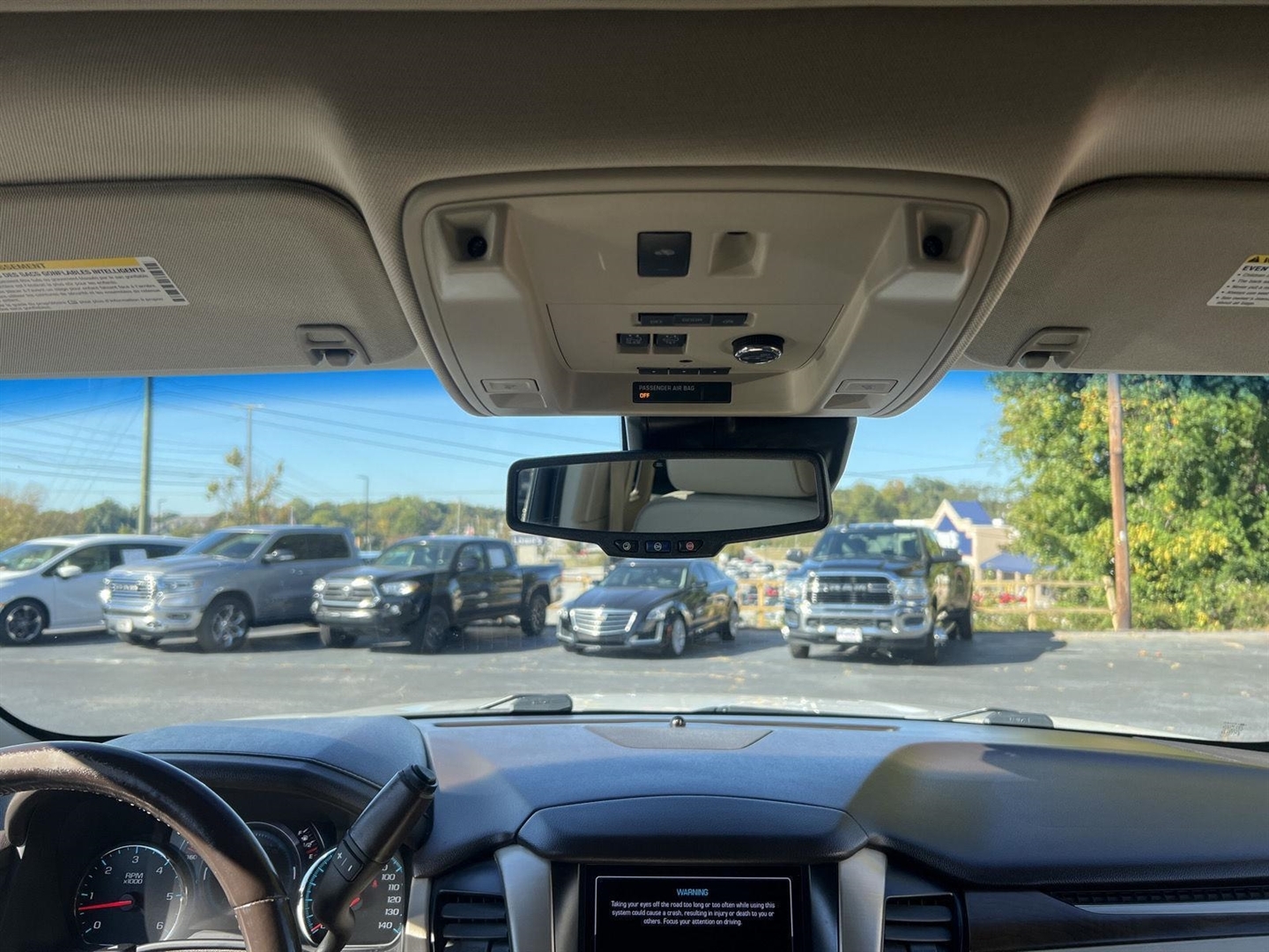 Airbags, Frontal airbags for driver and front outboard passenger; Seat-mounted side-impact airbags for driver and front outboard passenger; Driver inboard seat-mounted side-impact airbag; Head-curtain airbags for all rows in outboard seating positions (Always use safety belts and child restraints. Children are safer when properly secured in a rear seat in the appropriate child restraint. See the Owner's Manual for more information.)